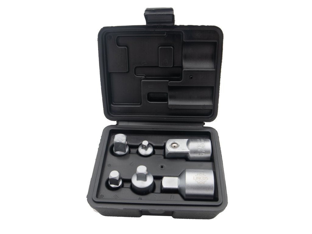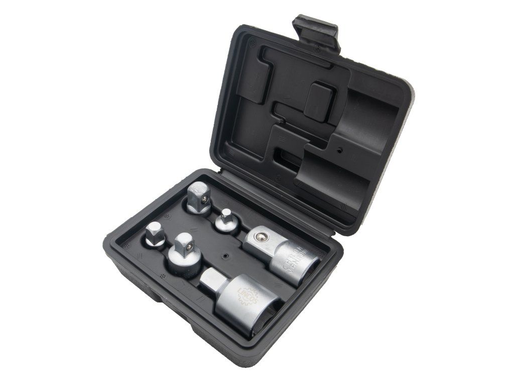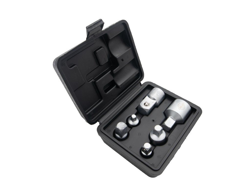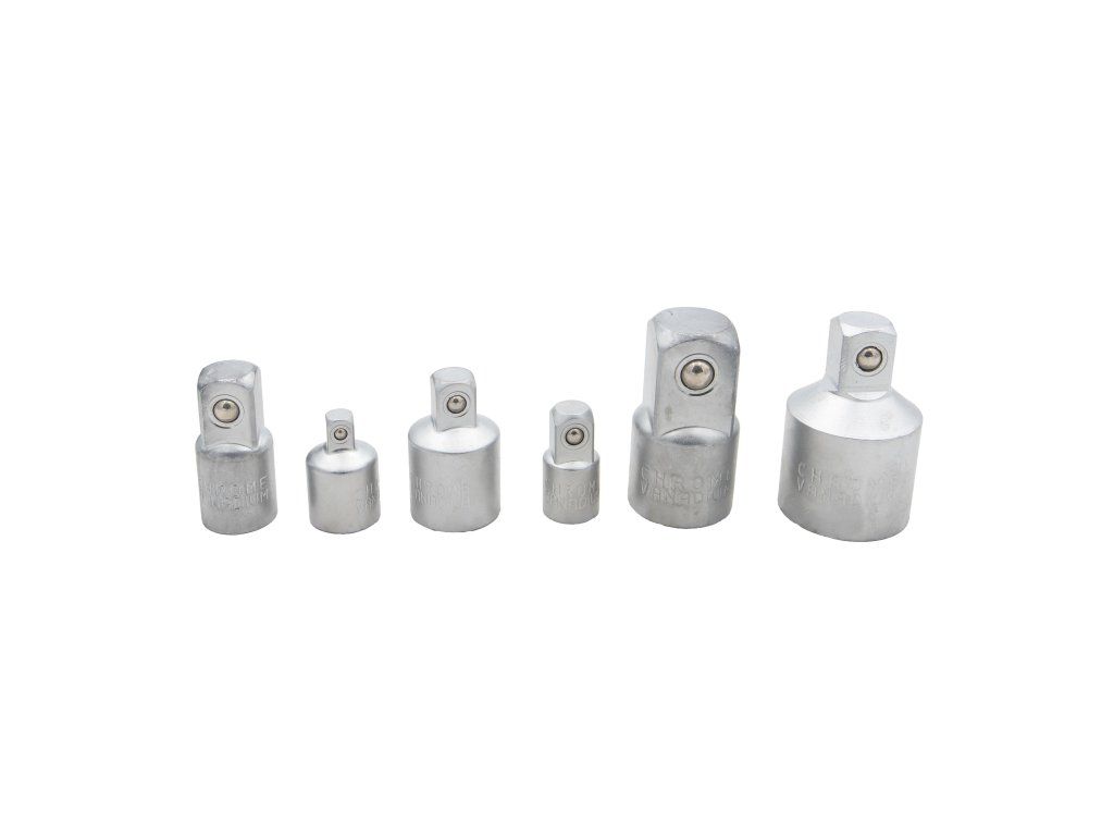Táto sada adaptérov je vyrobená z vysoko kvalitnej chróm-vanádiovej (CR-V) ocele s matným chrómovým povrchom a je vyrobená tak, aby ponúkala dlhotrvajúcu odolnosť a spoľahlivosť. Každý adaptér je vybavený prídržnou guľôčkou pre väčšiu bezpečnosť a účinnosť pri používaní. Táto 6-dielna sada je ideálna na prispôsobenie medzi rôznymi veľkosťami nástrčných kľúčov, vďaka čomu sú vaše nástrčné kľúče všestrannejšie.