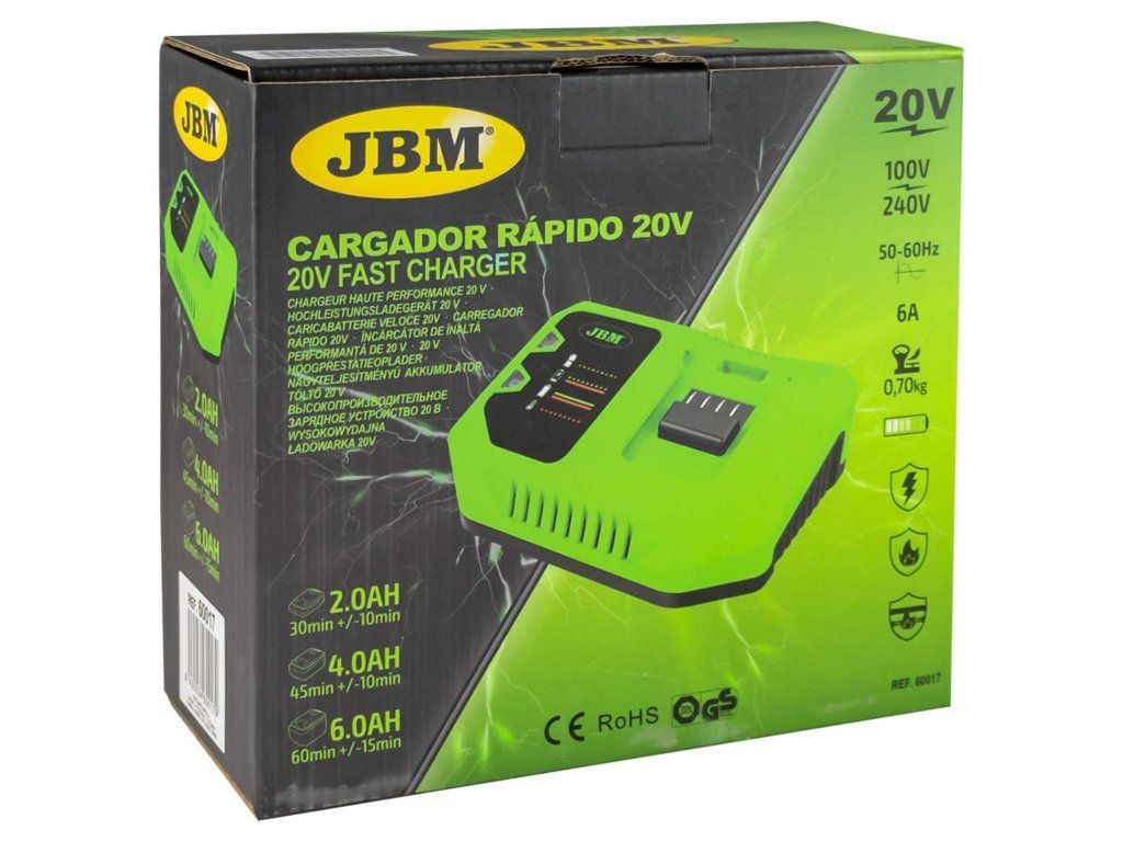 20V rýchlonabíjačka, 6A. Normy kvality: EN 60335-2-29:2004/A11:2018, EN 60335-1:2012/A13:2017, EN 62233:2008