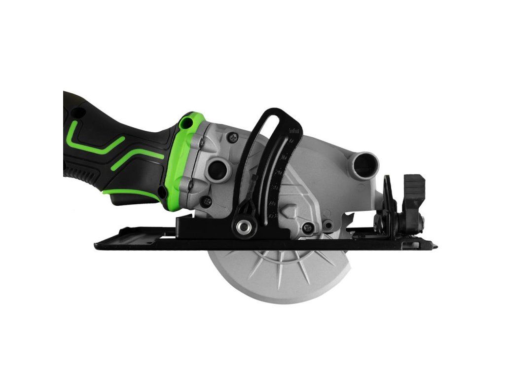 Táto kotúčová píla je vybavená aj tlačidlom na uzamknutie spúšte, aby sa zabránilo náhodnému spusteniu náradia, a hliníkovým krytom.