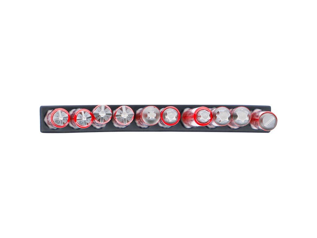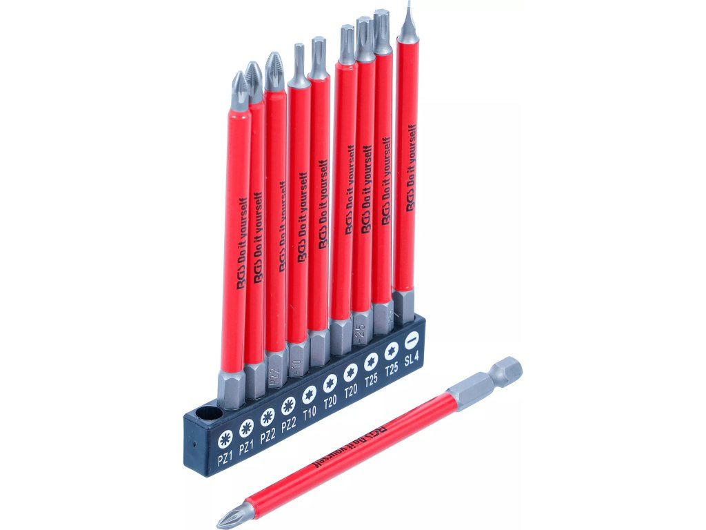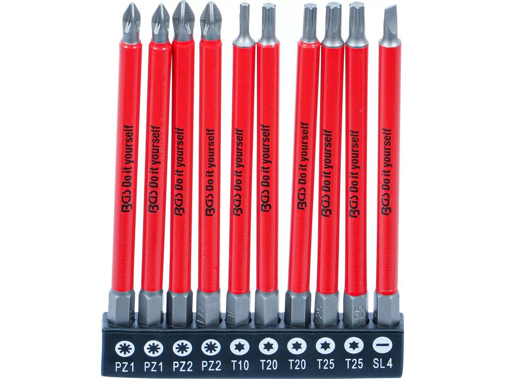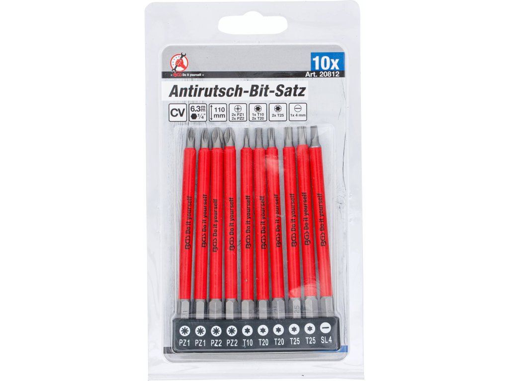 Magnetická protišmyková sada bitov 110mm, 10ks je nevyhnutným nástrojom do každej domácnosti, dielne a kufríka s náradím. Vyrobené z chróm-vanádiovej ocele, tieto extra dlhé 110mm bity ponúkajú vynikajúcu pevnosť a odolnosť. Magnetické hroty so zúbkovaným dizajnom zaisťujú pevné uchytenie hlavíc skrutiek, zatiaľ čo protišmyková izolačná vrstva zlepšuje úchop a kontrolu pri používaní.