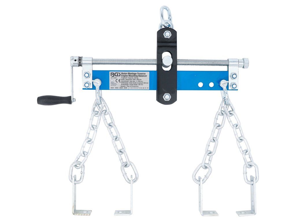 Vyvažovač na uchytenie motora zabezpečuje bezpečné a presné vyrovnanie motora pri zdvíhaní pomocou dielenského žeriava. Umožňuje vykonávať jemné nastavenia počas montáže alebo demontáže motorov, najmä pri ich zarovnávaní s prevodovkou. Vyvažovač sa vyznačuje odolnou konštrukciou s nosnosťou 350kg a presným rozsahom nastavenia +/-160mm.