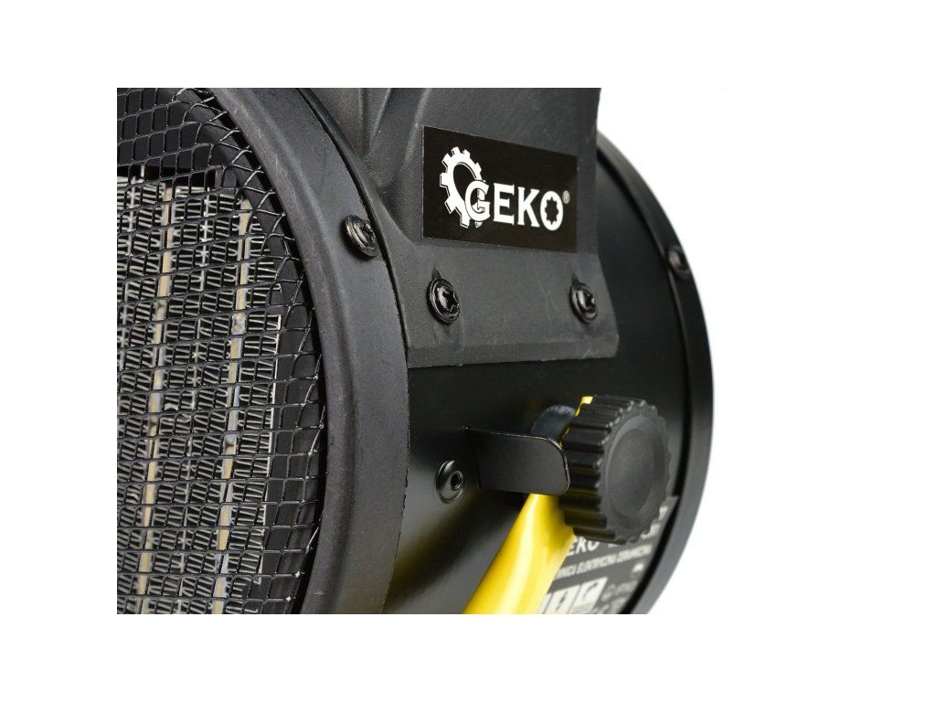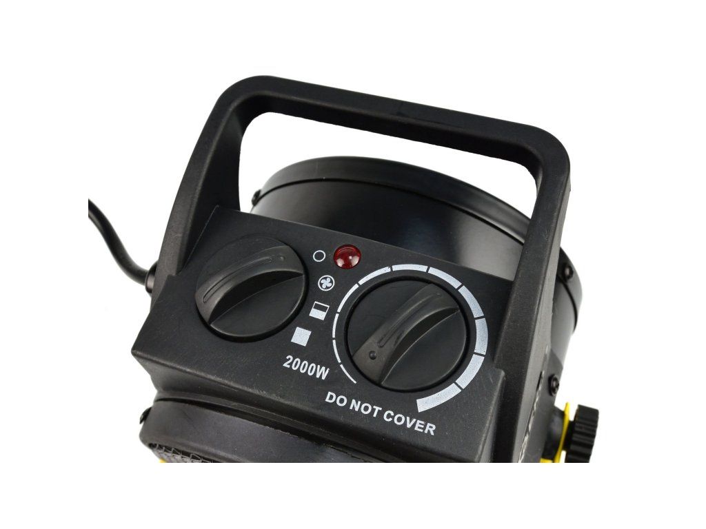 2kW elektrický ohrievač. Je vybavená keramickým vykurovacím telesom, ktoré v kombinácii so silným prúdením vzduchu zaisťuje rýchle vykúrenie miestností ako sú obchody, dielne, garáže, domácnosti a pod. Má dva gombíky. Jeden na nastavenie výkonu ohrievača, druhý je gombík termostatu na nastavenie teploty. Ohrievač prestane ohrievať po dosiahnutí nastavenej teploty. Keď teplota okolia klesne pod nastavenú teplotu, zariadenie sa opäť zapne. Konštrukcia ohrievača umožňuje nastaviť uhol prúdenia vzduchu. Má ergonomickú rukoväť na prenášanie ohrievača. Neprodukuje výpary ani nepríjemný zápach, odporúča sa najmä pre uzavreté miestnosti.