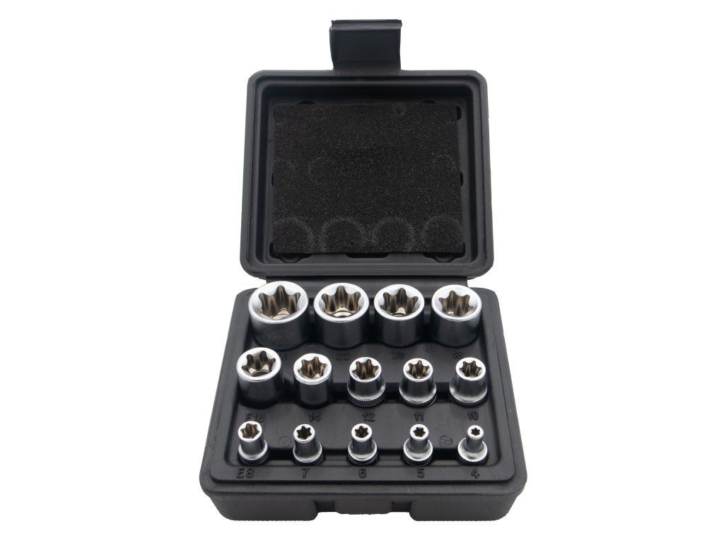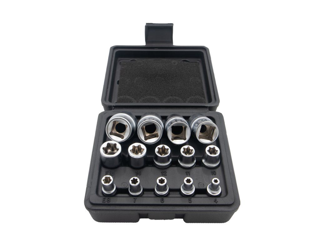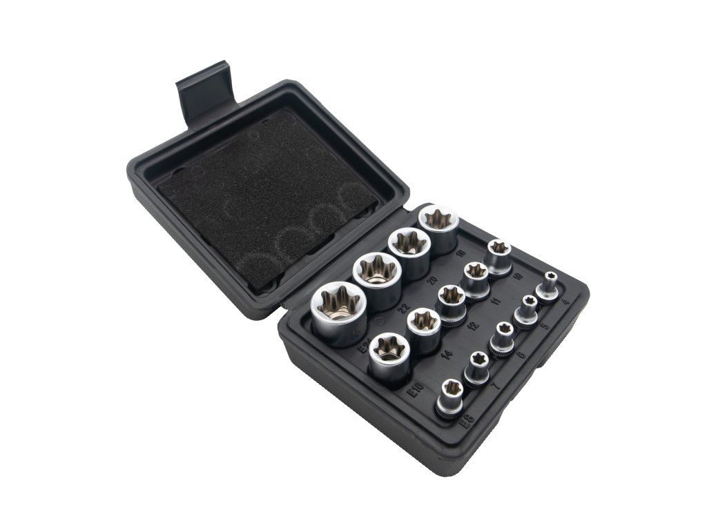 - Táto všestranná súprava, navrhnutá na použitie s externými skrutkami Torx, obsahuje rad veľkostí pätice od E4 do E24, vďaka čomu je ideálna pre automobilové, mechanické a priemyselné aplikácie.