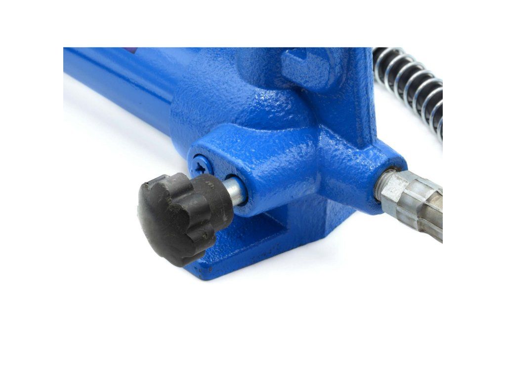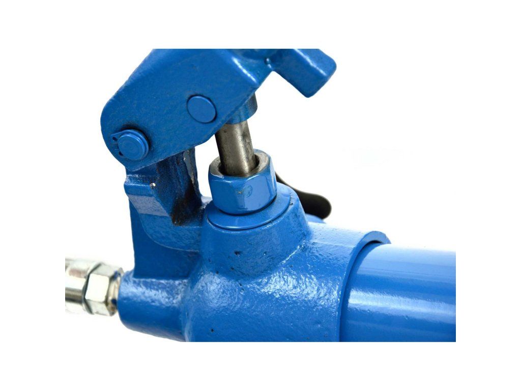 Zariadenie vytvára tlak 10 ton. Rýchlospojka na hadicu. Je určený pre malé lisy alebo iné hydraulické stroje. Pumpa je vyrobená z kvalitných materiálov, čo zaisťuje odolnosť a pohodlné používanie.