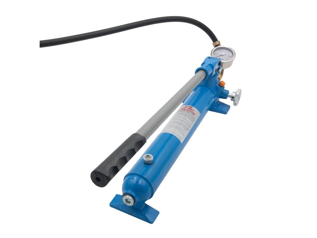 Toto dvojstupňové ručné hydraulické čerpadlo je určené na ovládanie hydraulických valcov do nosnosti 10 ton. Vďaka integrovanému manometru umožňuje priebežnú kontrolu tlaku pri zdvíhaní, lisovaní alebo polohovaní. Efektívny systém dvoch piestov zabezpečí rýchly prietok oleja pri nízkom tlaku a spoľahlivý výkon pri záťaži.