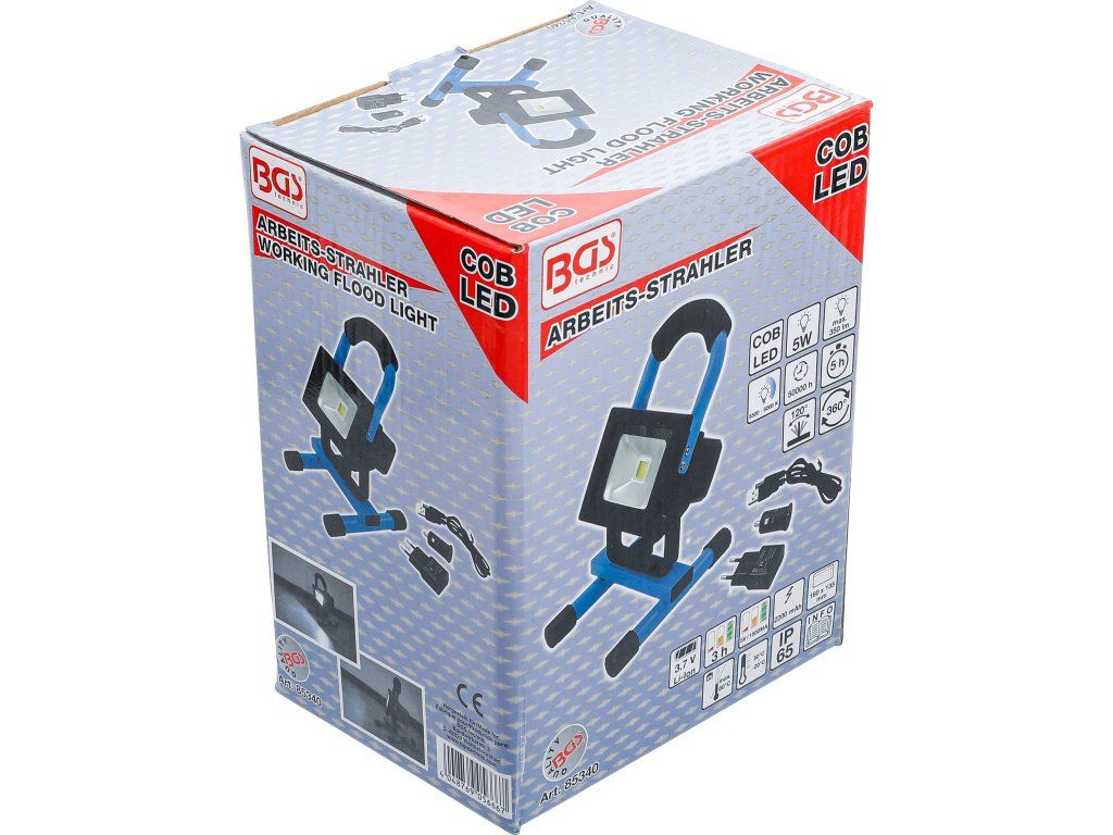 Akumulátorový pracovný reflektor COB-LED, 5W je robustný a všestranný zdroj svetla, navrhnutý na použitie v interiéri aj exteriéri, ideálny pre dielne, garáže, stavby či záhrady. Kombinuje energeticky úsporné COB-LED osvetlenie s odolnou batériovou prevádzkou.