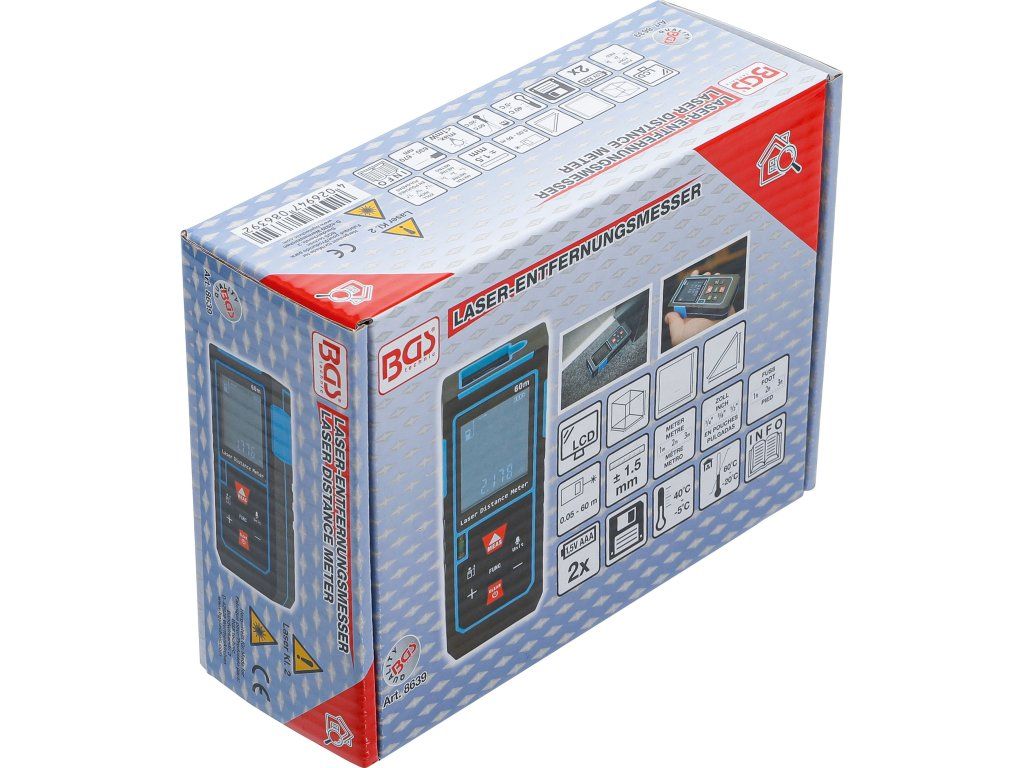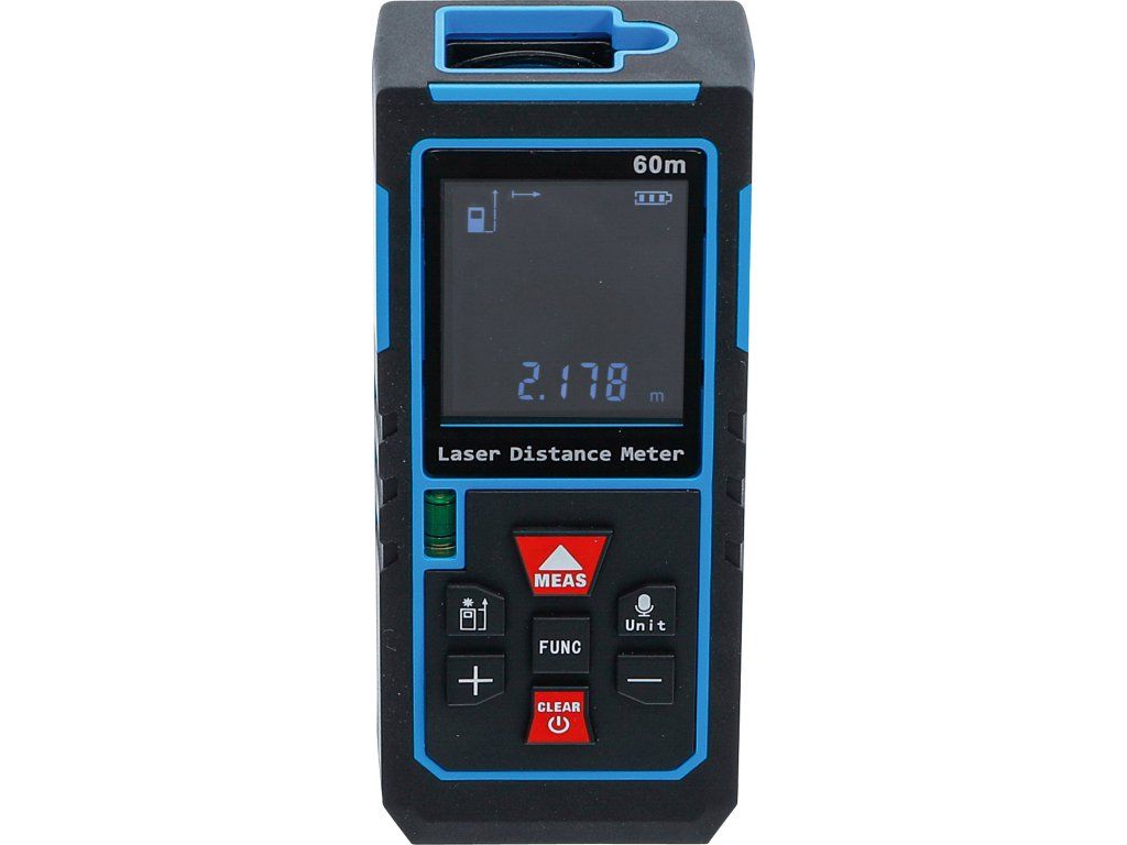 Laserový merač vzdialenosti je kompaktné a všestranné meracie zariadenie, ktoré umožňuje presné merania v rôznych aplikáciách. So režimami samostatného a kontinuálneho merania umožňuje výpočet dĺžky, plochy a objemu, vrátane priamych a nepriamych (Pytagorových) meraní. Pamäťová funkcia uchováva predchádzajúce namerané hodnoty na jednoduché prehliadanie. Podsvietený displej zabezpečuje výbornú čitateľnosť aj za slabých svetelných podmienok.