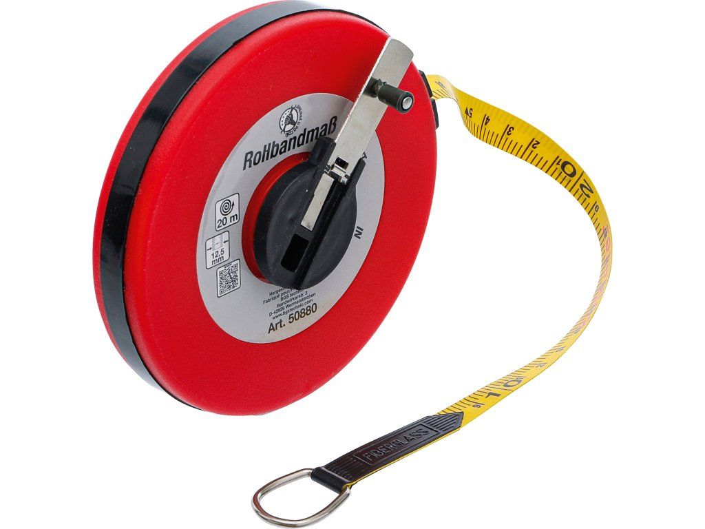 Toto meracie pásmo je vybavené 12,5mm širokým, 20m dlhým pásom zo sklolaminátu odolného voči oderu, ktorý poskytuje spoľahlivé a dlhodobé používanie. Metrická stupnica je vytlačená z oboch strán pásma, čo zvyšuje jeho viditeľnosť a univerzálnosť počas merania.