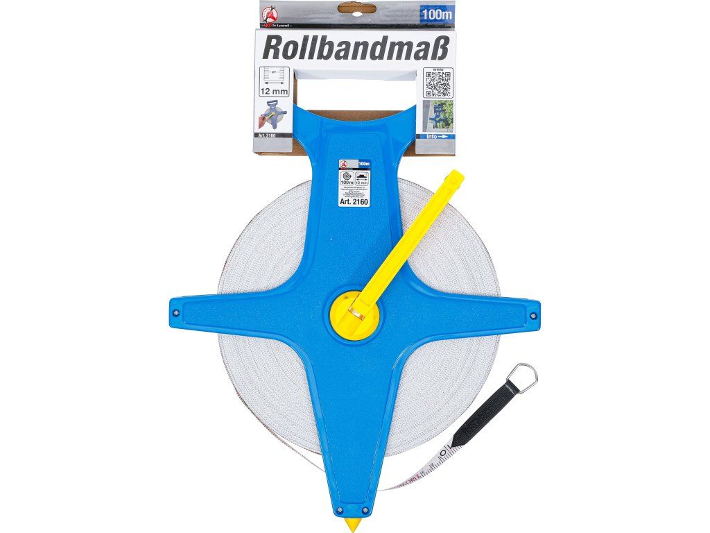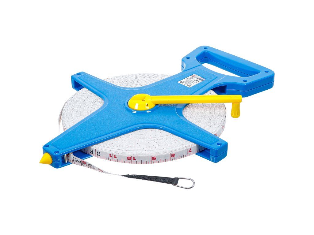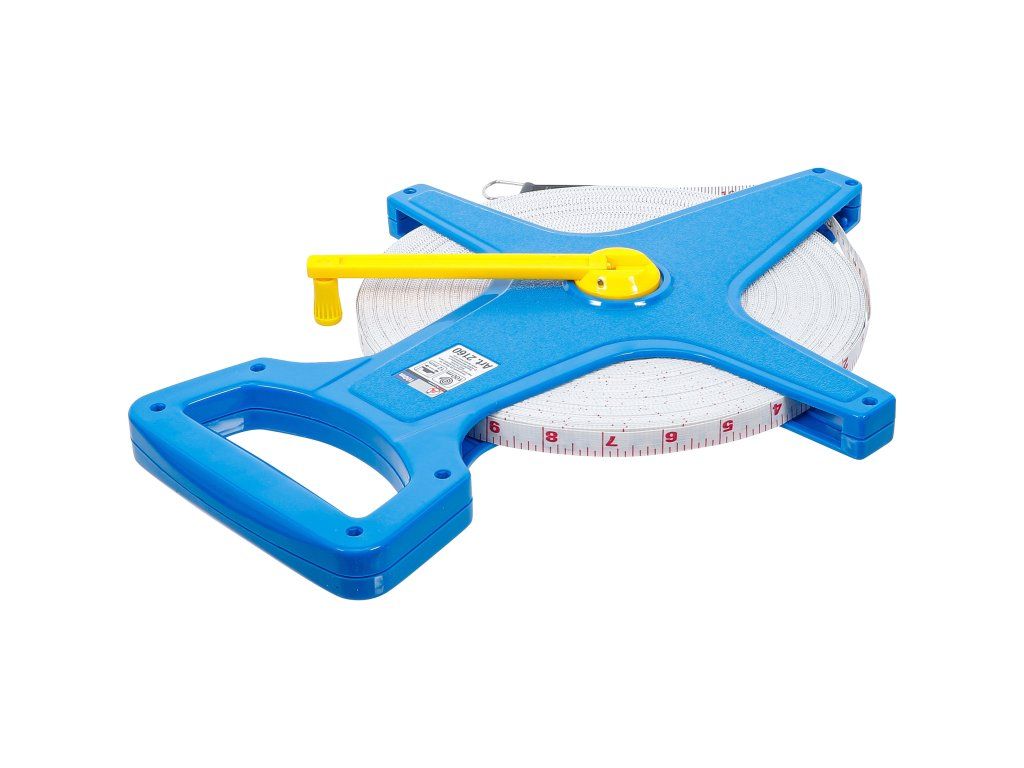 Toto 100-metrové meracie pásmo je navrhnuté pre profesionálne meranie na veľké vzdialenosti. Obsahuje pás široký 12mm s jasným obojstranným značením—metrickou stupnicou na prednej strane a palcovou na zadnej strane. Jeho odolný modrý plastový krížový rám a zaťahovacia kľuka poskytujú bezpečnú manipuláciu a efektívne navíjanie pásma.