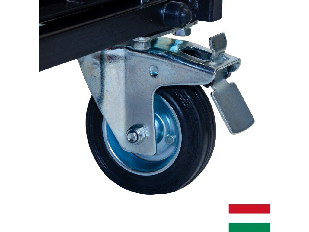 - 2 pogumované priemyselné otočné kolieska (nosnosť 70 kg/ks)