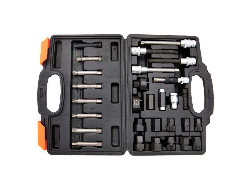 Pomocou súpravy na demontáž voľnobežky alternátora môžete remenicu bezpečne držať na mieste, zatiaľ čo uvoľňujete a odstraňujete centrálnu maticu alebo skrutku, ktorá ju pripevňuje k hriadeľu alternátora. To vám umožní podľa potreby vymeniť alebo opraviť remenicu voľnobežky, čím sa zabezpečí správna funkčnosť alternátora.