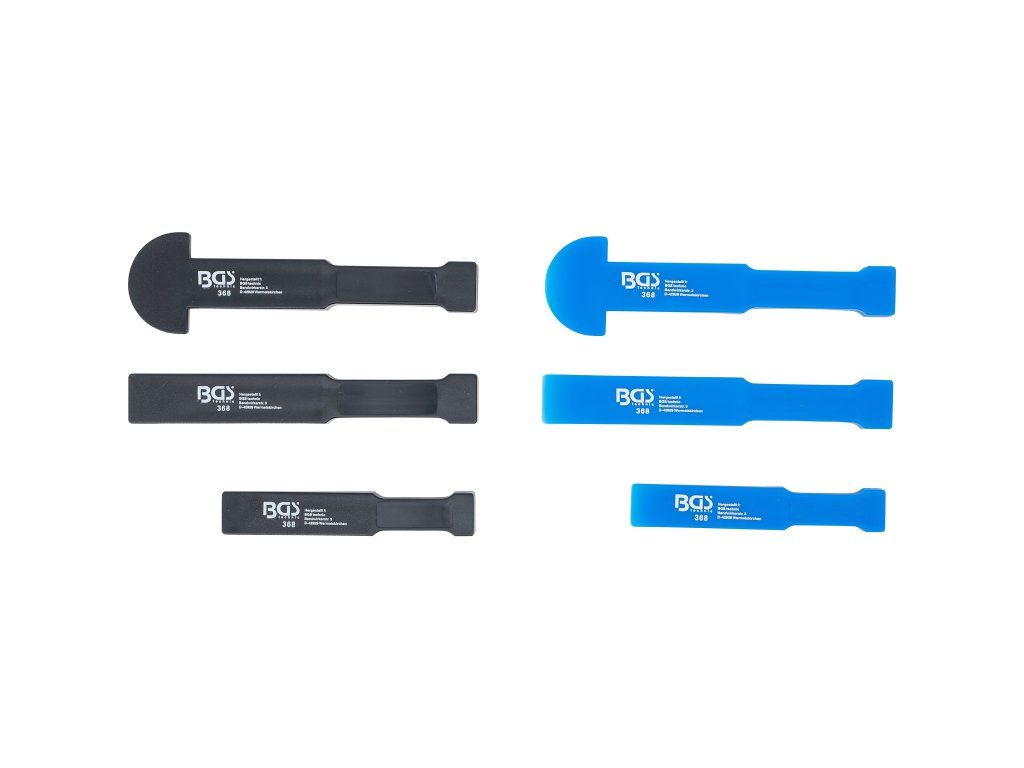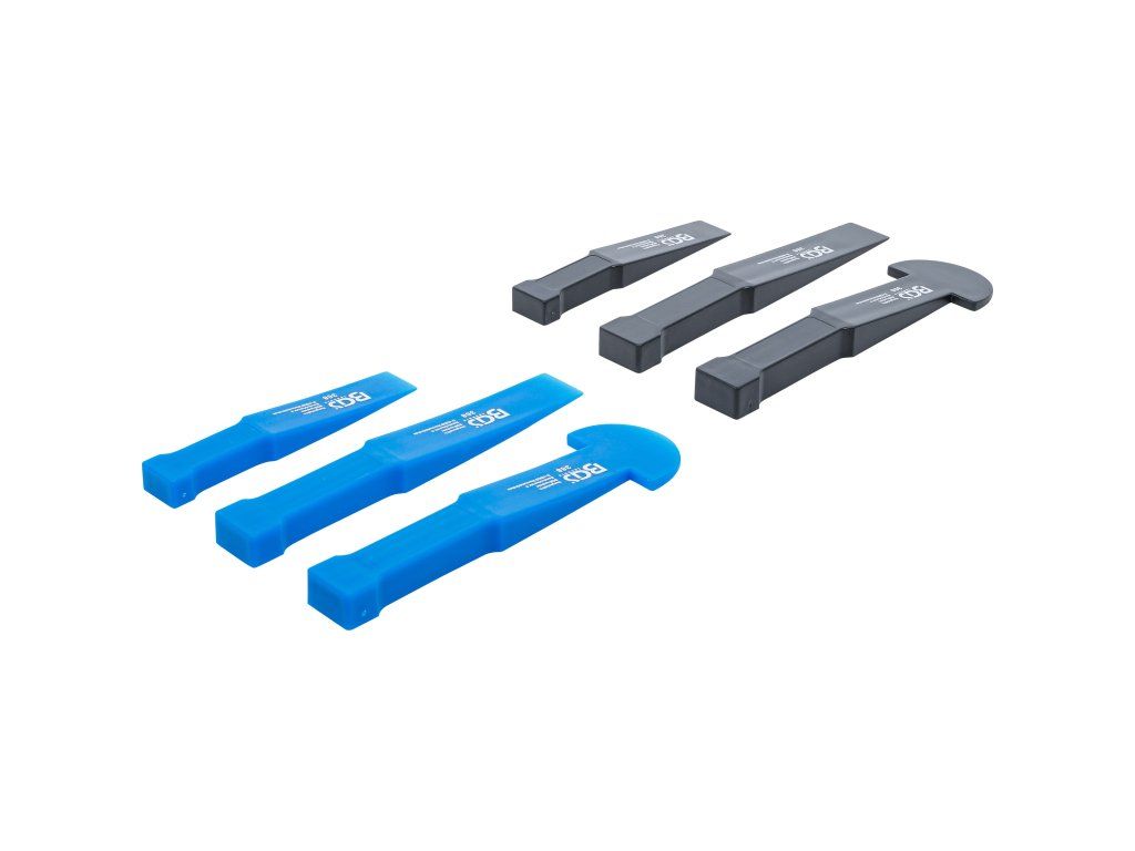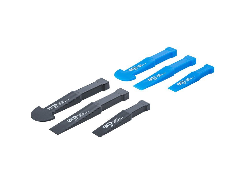 Sada plastových sekáčov, 6 ks je navrhnutá na šetrnú demontáž automobilových dielov, ako sú interiérové panely, lepené ozdobné prvky a závažia kolies. Sekáče z kvalitného plastu sú ideálne na citlivé práce, kde by kovové nástroje mohli spôsobiť poškriabanie alebo deformáciu.