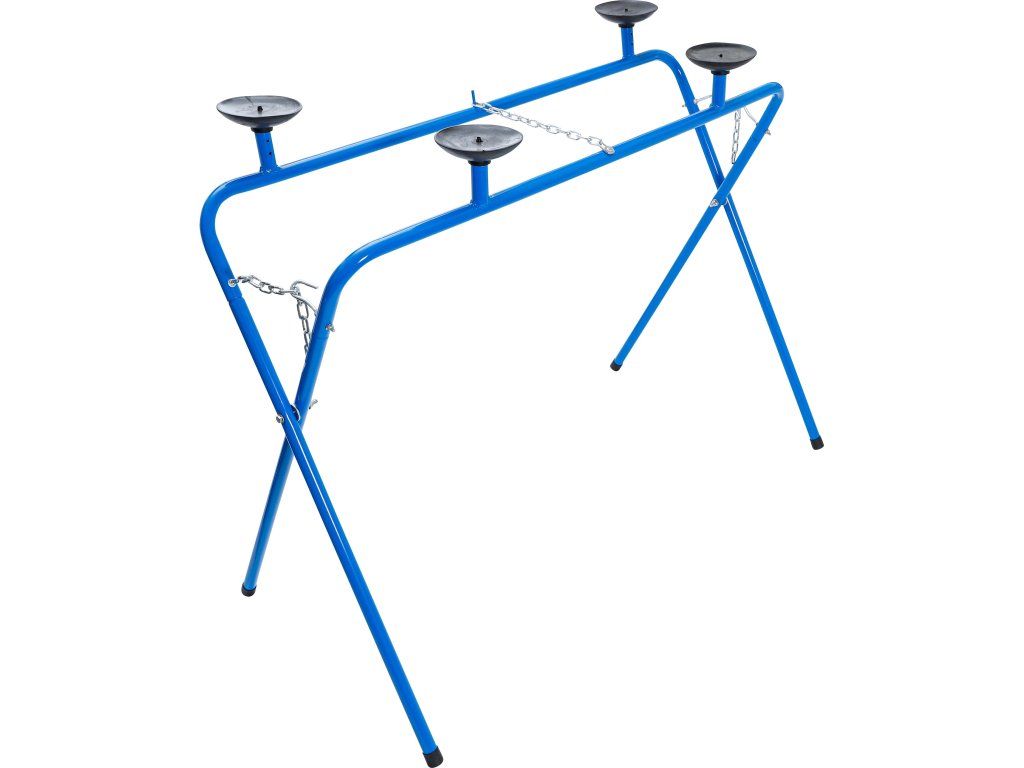 Držiak čelného skla s prísavkami je určený na bezpečné skladovanie a manipuláciu s čelnými sklami počas opráv alebo nanášania lepidla. Je vhodný pre predné, zadné, bočné sklá a iné sklenené plochy. Vďaka 4 veľkým prísavkám (Ø130mm) poskytuje stabilné a bezpečné uchytenie. Držiak je skladací, čím šetrí miesto, keď sa nepoužíva.