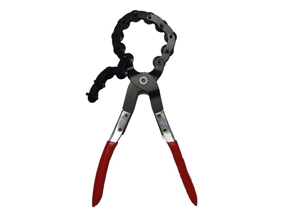 Samosvorná reťaz prevažne na rezanie výfukových potrubí. Články reťaze sa ovinú okolo vašej rúry aj v tesných a obmedzených priestoroch. Otočný dizajn zaisťuje plynulý chod vašich rezacích nožov, zatiaľ čo zostávajú stále v kontakte s vonkajšou stenou trubice. Obsahuje 14 rezacích nožov. Akonáhle sú vaše rezačky hadičiek omotané okolo potrubia, jemne ich stlačte a otočte, aby ste zarezali do materiálu. Pre hlbšie rezy utiahnite úchop.