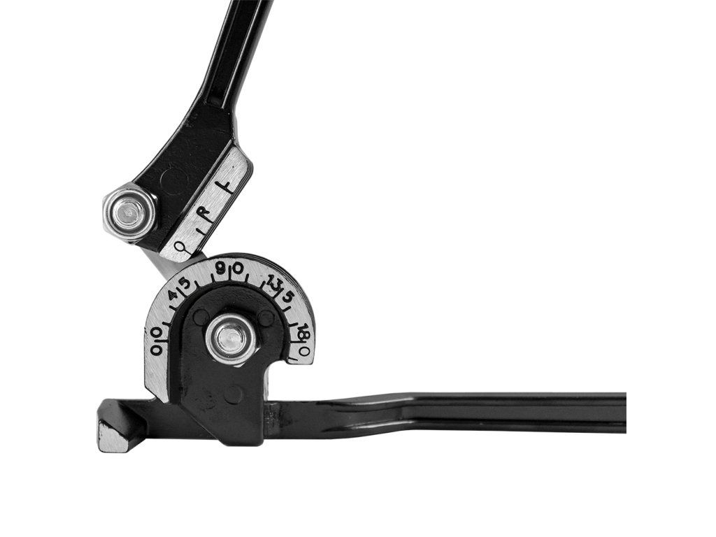 Dokonale ohýba hliníkové, medené a oceľové rúry. Pákové ovládanie umožňuje ľahké a presné ohýbanie bez zbortenia hadičky. Označený mierka pre presné uhly 0-180°. Pevná konštrukcia z liatej ocele s opracovanými a lakovanými povrchmi. Pre priemery rúr: 6, 8, 10 mm.