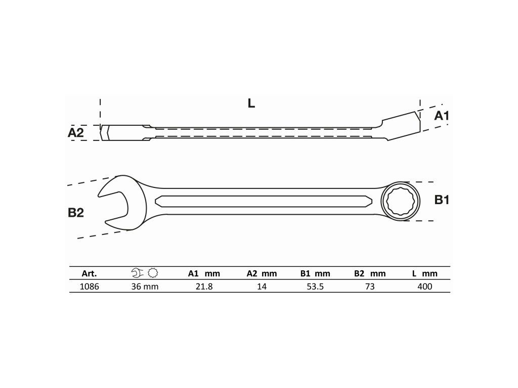 Veľkosť kľúča: 36 mm (otvorený a očkový koniec)