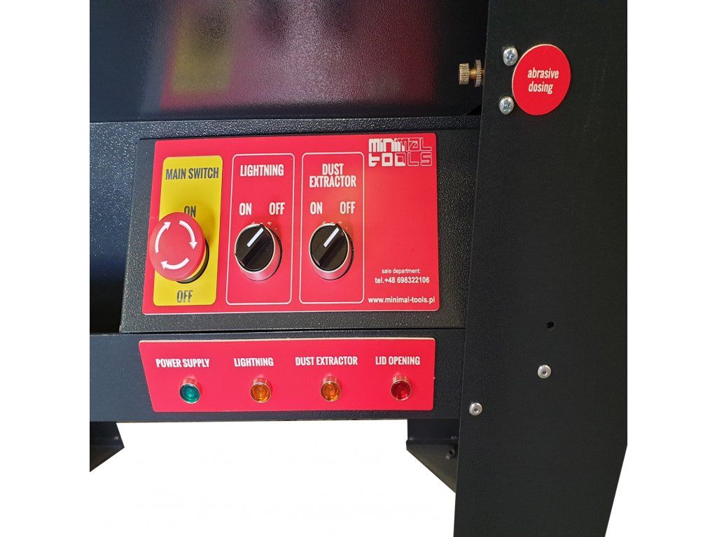 - 1ks elektrický ovládací panel: núdzové zastavenie, lampa, spínač odsávania prachu,