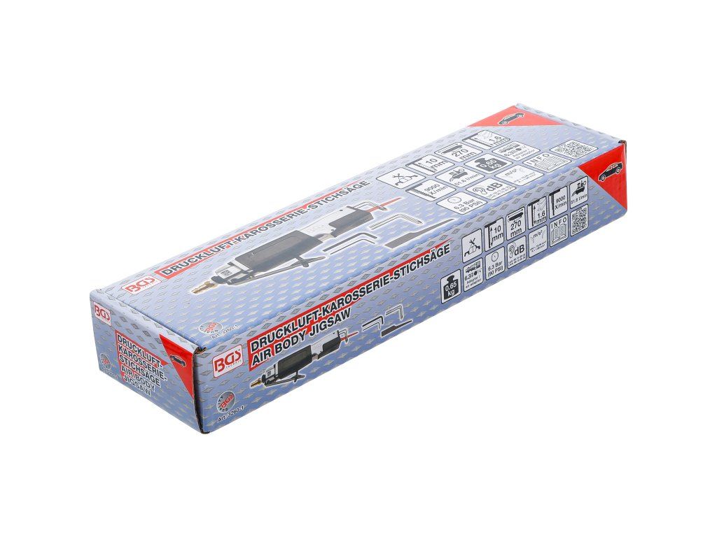 Táto pneumatická priamočiara píla je ľahký a výkonný nástroj na presné rezanie karosérií, plechov a ďalších materiálov. S rýchlosťou až do 9000 zdvihov za minútu zabezpečuje rýchly a presný výkon, ideálny pre automobilové opravy a kovovýrobu.