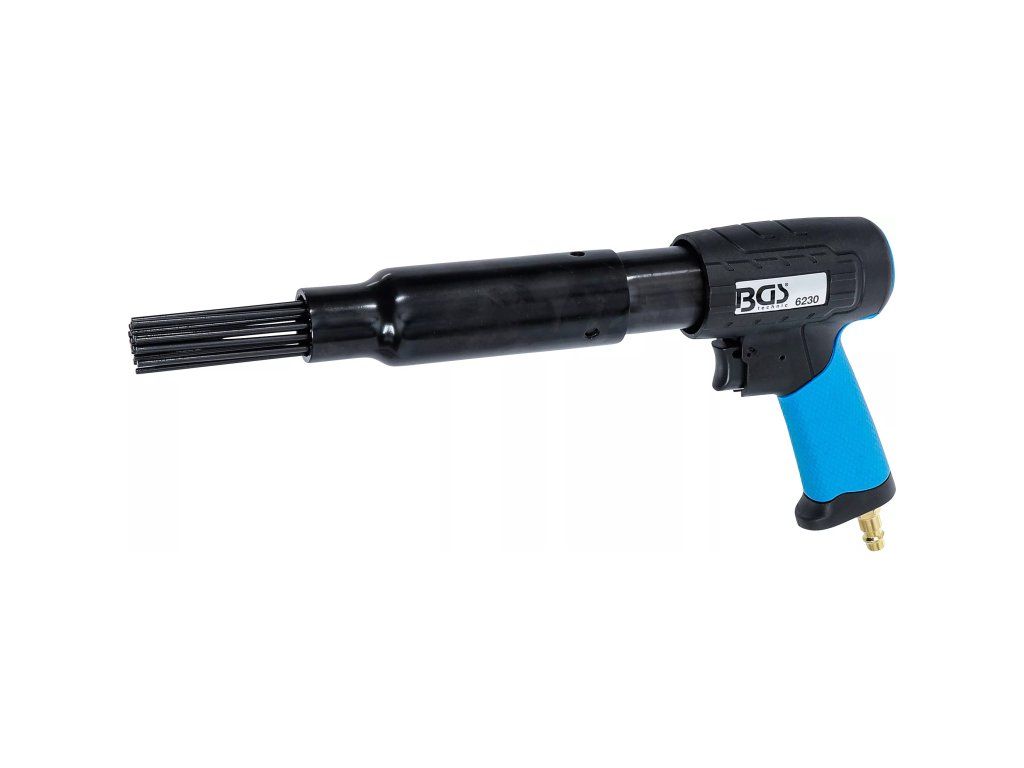Pneumatický ihlový oklepávač je určený na odstraňovanie hrdze, čistenie a odstraňovanie vrstiev náterov zo solídnych kovových dielov. Je ideálny na karosárske práce a práce na podvozkoch v automobilovom priemysle a ponúka rovnováhu medzi hrubším pieskovaním a jemnejšími kladivami na hrdzu.