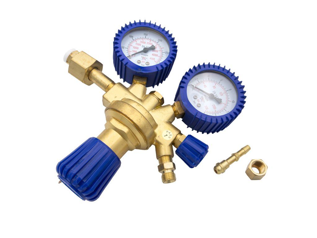 - Tento kyslíkový (O₂) redukčný ventil je určený na presné a stabilné riadenie prietoku kyslíka pri zváraní, rezaní a rôznych priemyselných procesoch.
