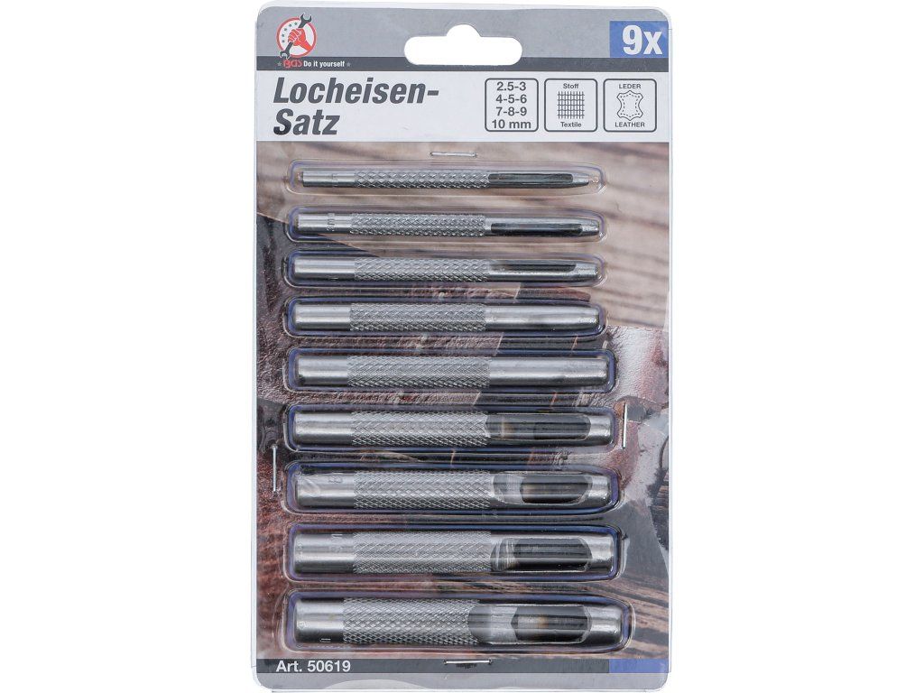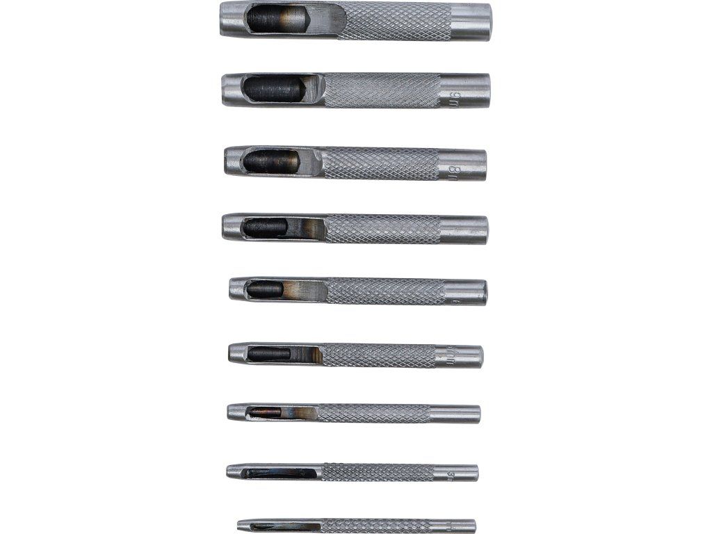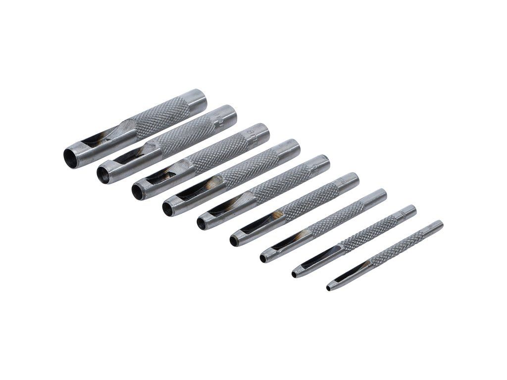 Táto 9-dielna sada dutých dierovačov 2.5-10mm je ideálna na precízne dierovanie kože, textílií a papiera. Každý dierovač má slot na odvod materiálu, umožňujúci jednoduché odstránenie vyrazenej časti a zaručujúci čistú a efektívnu prácu.