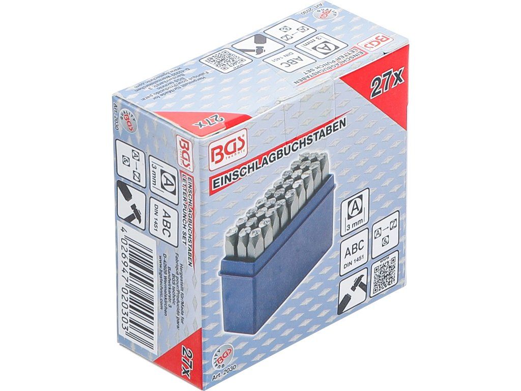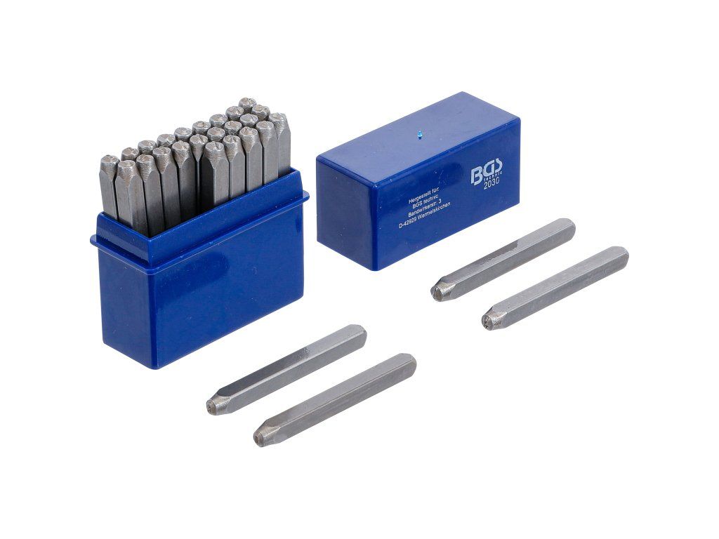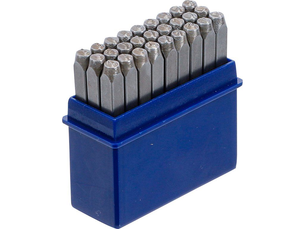 Sada razidiel písmen, 3mm je presný nástroj určený na vyrazenie veľkých písmen A až Z a symbolu „&“ do povrchov z ocele a železa. Vyrobená podľa normy DIN 1451 zaručuje jednotné a čitateľné značenie vhodné pre profesionálne použitie.