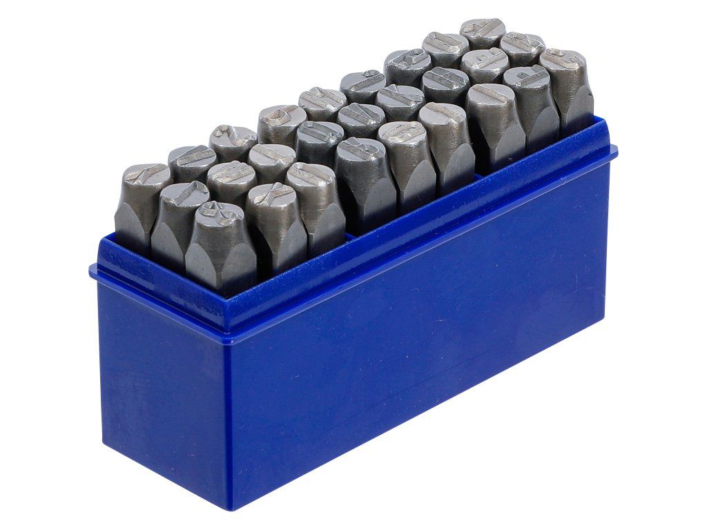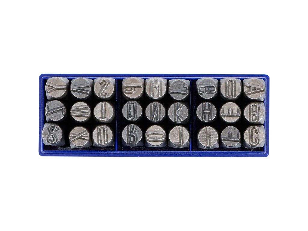 Sada razníc na písmená, 10mm je určená na robustné značenie písmen do ocele a železa. Obsahuje veľké písmená A–Z a symbol "&". Zhotovená podľa normy DIN 1451, zaručuje konzistentné a hlboké vyrazenie vďaka posunutej gravírovacej ploche s obmedzovačom hĺbky pre presné a kontrolované značenie.