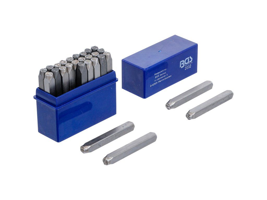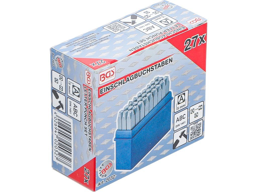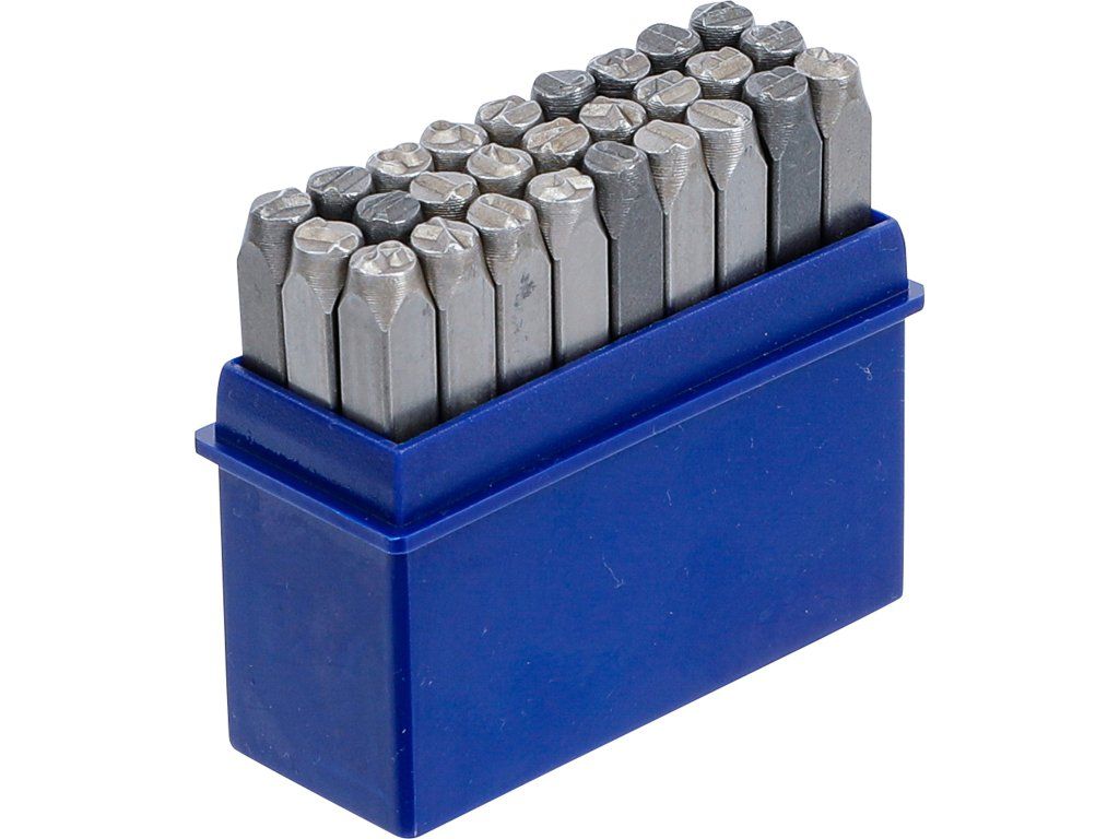 Sada razníc písmen, 5mm je určená na presné a trvácne značenie ocele a železa. Spĺňa štandard DIN 1451 a obsahuje veľké písmená A až Z a znak „&“, čo zaručuje spoľahlivé označovanie s kontrolovanou hĺbkou vďaka konštrukcii s dorazom hĺbky.