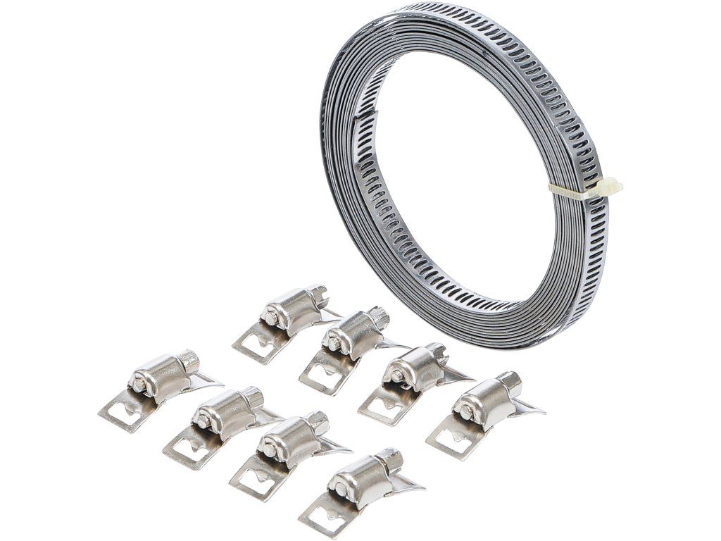 Táto univerzálna sada hadicových svoriek ponúka flexibilné a prispôsobiteľné uchytenie vďaka svojmu 3-metrovému nekonečnému pásu. Ideálna pre široké spektrum aplikácií. Umožňuje vám rýchlo a jednoducho vytvárať hadicové svorky akejkoľvek požadovanej veľkosti.