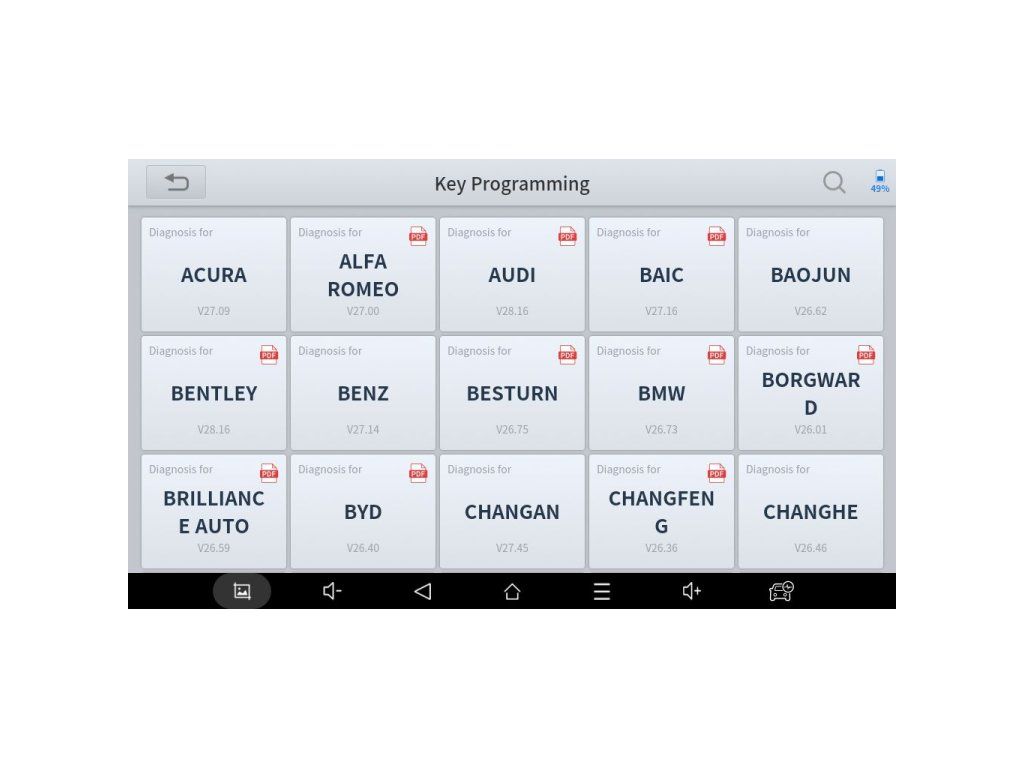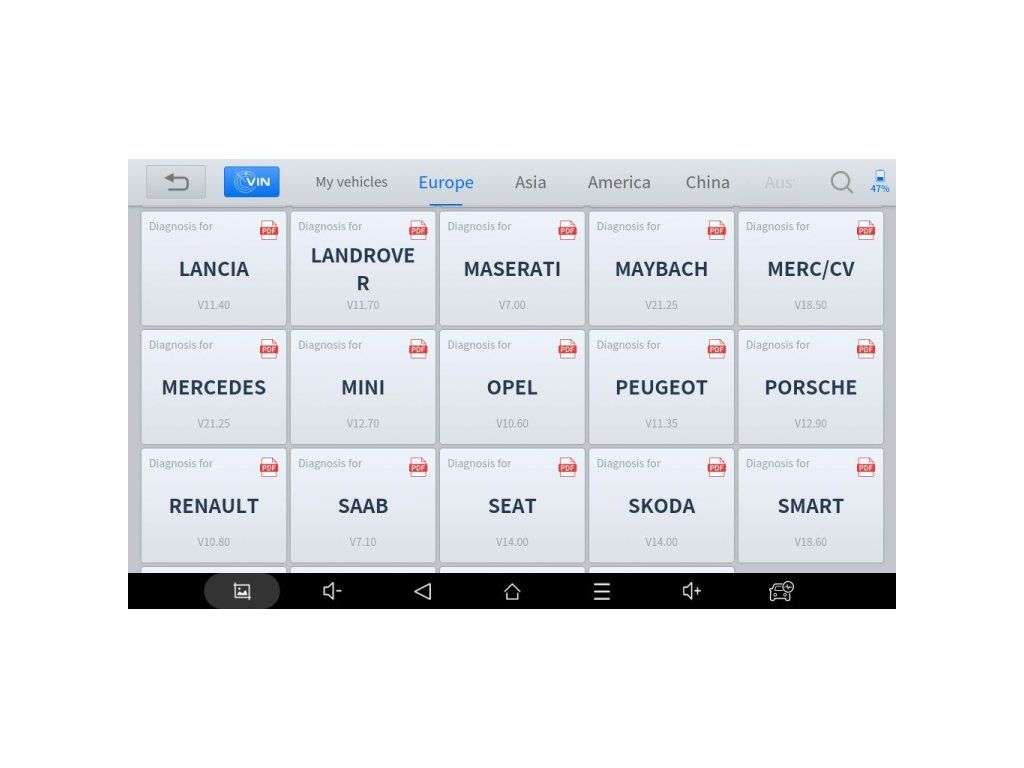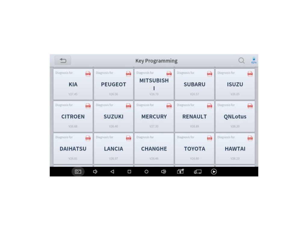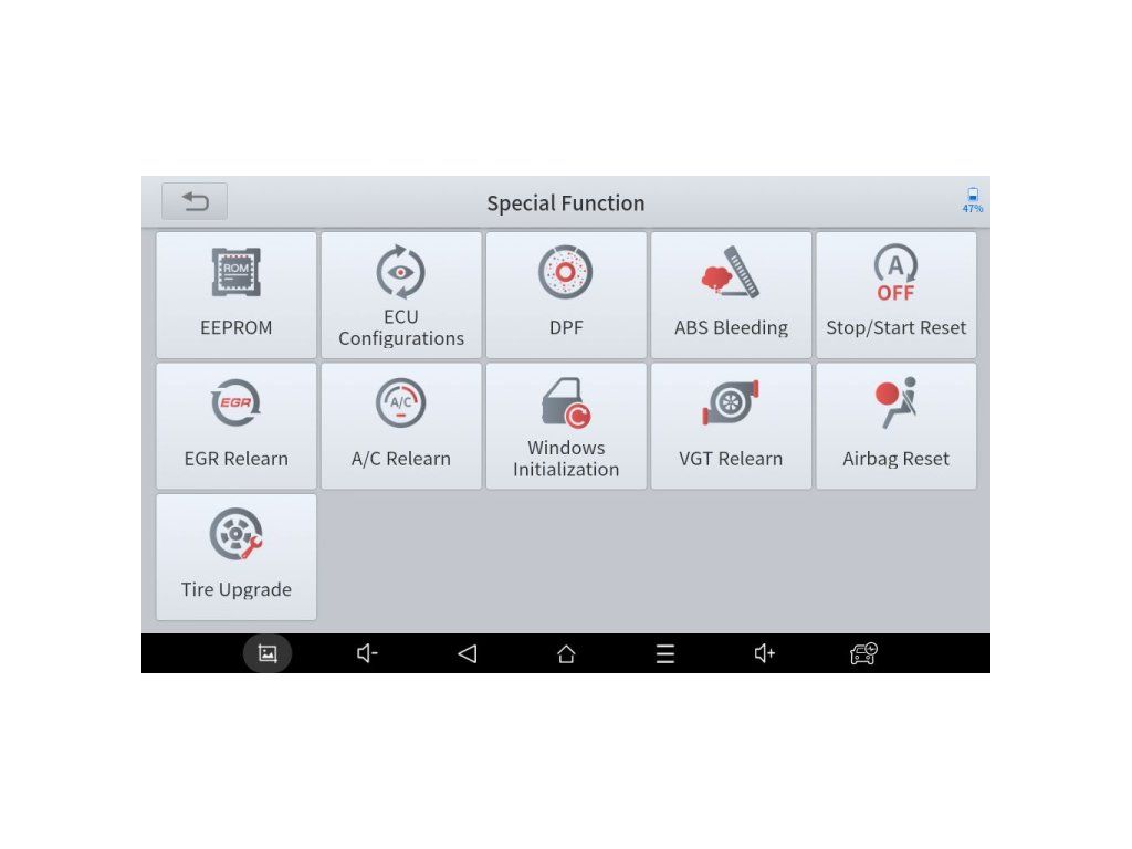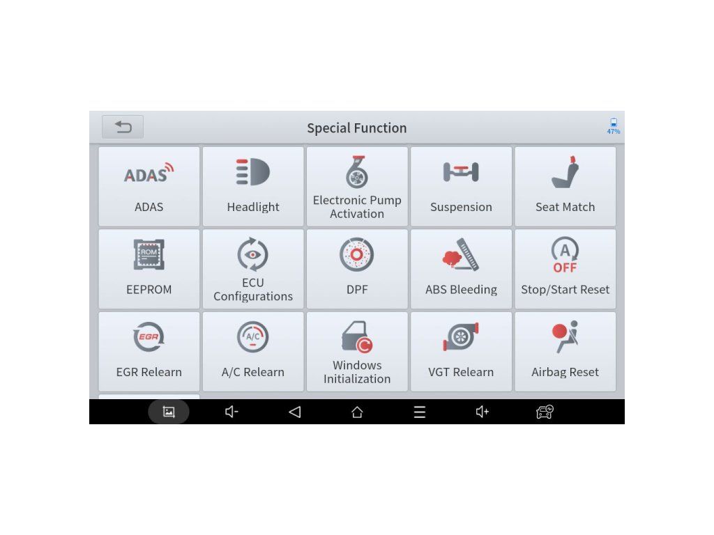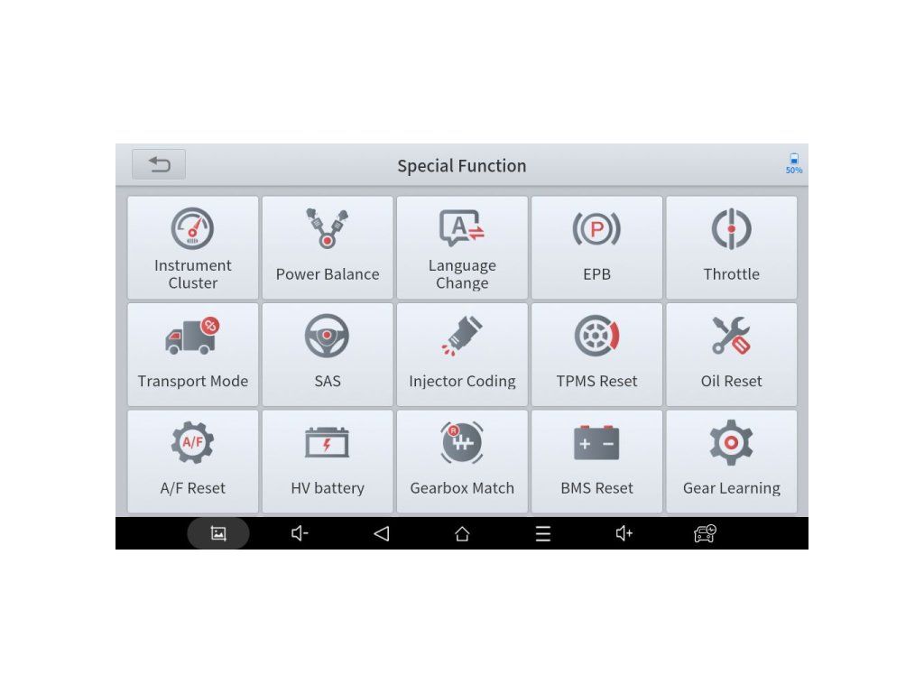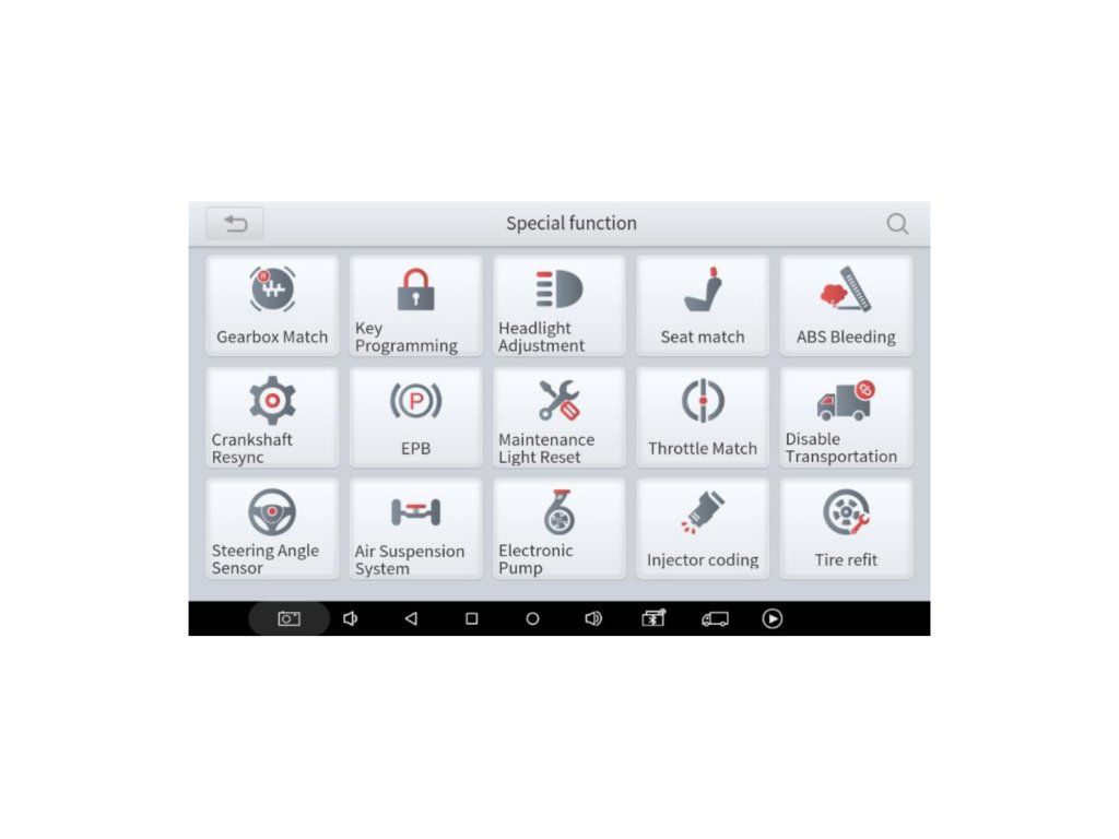 Programovanie kľúča, generovanie kľúča predajcu, strata všetkých kľúčov, resetovanie alebo výmena imobilizéra, nástroj na kódovanie čipu EEPROM, ktorý podporuje úplnú diagnostiku systému, vrátane čítania a vymazávania DTC, čítania dátového toku a aktivačných testov pre všetky systémy. All-in-one expert na špeciálne funkcie s 30+ funkciami ako SAS, EPB, DPF atď. Kompatibilný s takmer všetkými modelmi a značkami, vďaka čomu je tablet skvelým nástrojom pre zámočnícke firmy. Pripája sa k vozidlu pomocou kábla OBD 2.