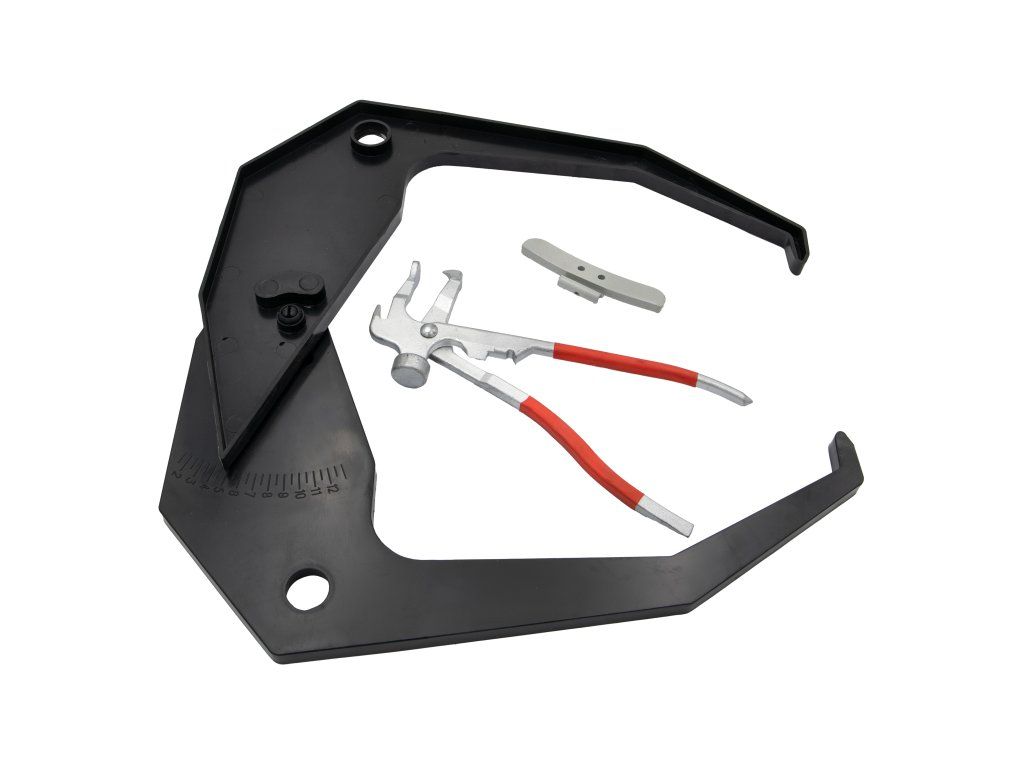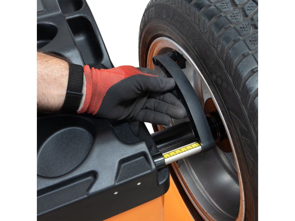 Vzdialenosť medzi ráfikom a strojom je možné zmerať posuvným meradlom, pričom hodnotu je potrebné zadať manuálne. Šírku a priemer kolesa je po zmeraní potrebné zadať ručne pomocou priloženého meradla šírky disku.