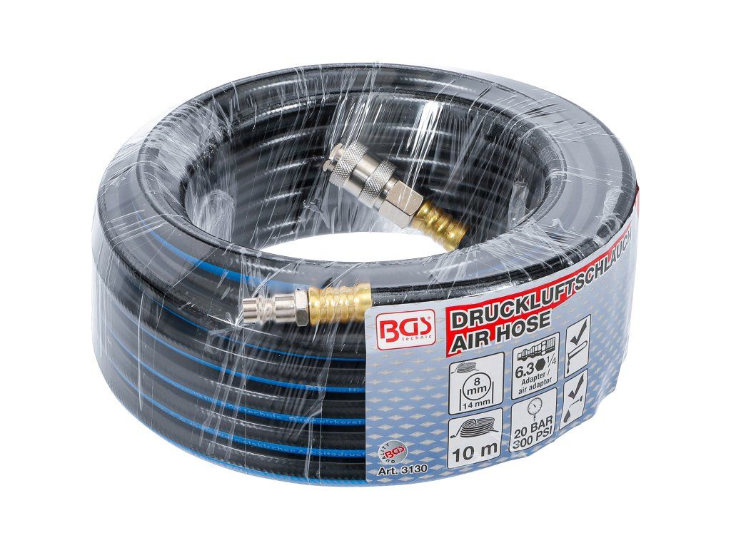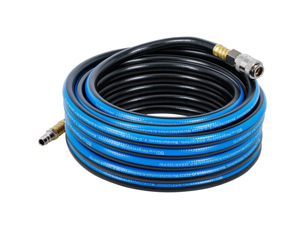 Táto odolná 10-metrová vzduchová hadica je navrhnutá na spoľahlivé použitie aj v náročných podmienkach. Vyrobená zo spoľahlivého PVC materiálu, odoláva olejom a kyselinám, čím zaručuje dlhú životnosť. Je vybavená vzduchovou rýchlospojkou pre okamžité pripojenie ku kompresorom a pneumatickému náradiu. S prevádzkovým tlakom do 20 barov a vnútorným priemerom 8 mm poskytuje vynikajúci výkon pre rôznorodé pneumatické aplikácie.
