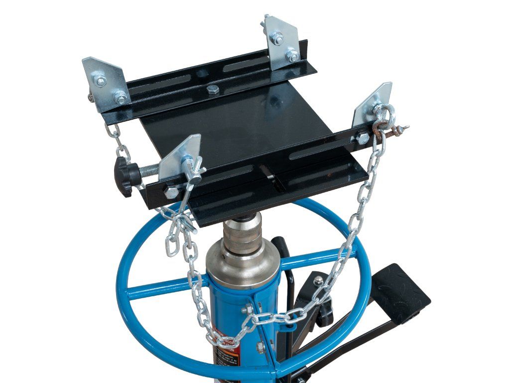 Hydraulický zdvihák prevodoviek 0.6t je teleskopický model s vysokým zdvihom, určený na demontáž a montáž prevodoviek vo vozidlách na zdviháku. S nosnosťou 0.6t (600kg) umožňuje stabilné a presné vertikálne nastavenie v rozsahu 855–1760mm, vďaka čomu je ideálny do profesionálnych autoservisov.